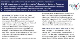UNHCR Undermines of Local Organization’s Capacity in Rohingya Response