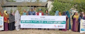 Shyamnagar, Satkhira, 21 December 2025: Shrimp and crab farming by introducing saline water into agricultural land is destroying cropland, reducing soil fertility, and severely impacting the livelihoods of local people. Due to this, food production is decreasing, and the agriculture-dependent population is facing long-term risks. Therefore, it is essential to halt salt, shrimp, and crab farming on agricultural land to ensure livelihoods and food security. The entry of saline water into agricultural land must be completely stopped, effective laws must be implemented to prohibit shrimp and crab farming in cropland, alternative income and rehabilitation measures must be ensured for the affected farmers, and land use changes must be stopped without the consent of the local people. We must return to agriculture.