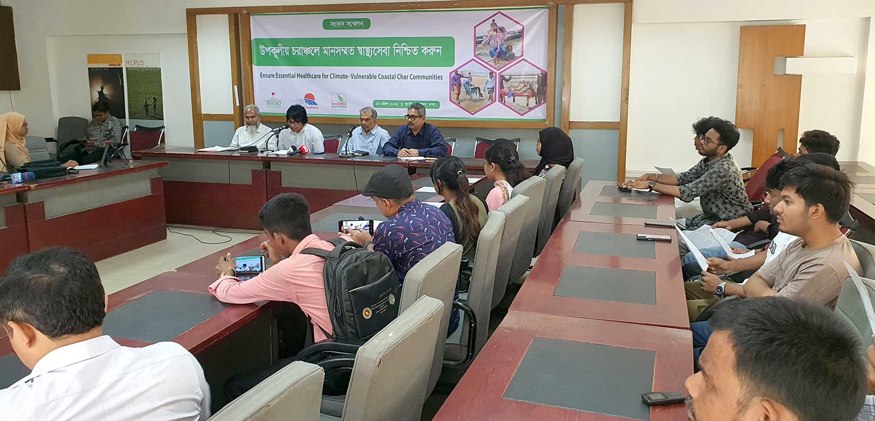 Dhaka, 15 April 2026: Basic healthcare remains a neglected reality for vulnerable, climate-affected, and isolated coastal char communities. Ensuring healthcare protection for these marginalized populations is now a matter of fundamental justice, speakers said at a press conference. They highlighted that char dwellers are facing a “double crisis”—on one hand the impacts of climate change, and on the other, a severe lack of healthcare services. In these remote char areas, where people struggle daily for survival, the term “development” will remain merely statistical unless it brings real change. “Health for All” cannot remain just a slogan; it must be translated into concrete action.