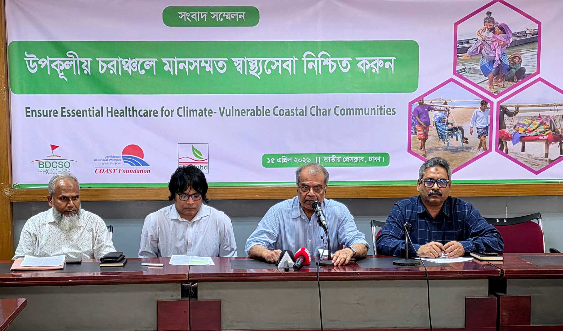 These demands were raised at a press conference titled “Basic Healthcare: A Neglected Reality in Char Areas”, held today on 15, April, 2026, at the VIP Lounge of the National Press Club in Dhaka. COAST Foundation, EquityBD, & the BDCSO Process organized this event. It was chaired by M Rezaul Karim Chowdhury, Executive Director of COAST Foundation & Chief Moderator of EquityBD. Among others, speakers included Mostafa Kamal Akand, Coordinator of BDCSO Process, and Syed Ashraf Hossain of Society for Development Initiatives. M. A. Hasan of COAST Foundation presented the keynote paper.
