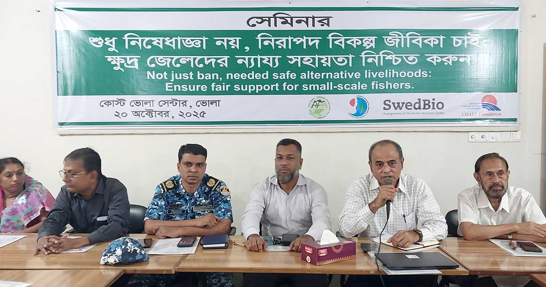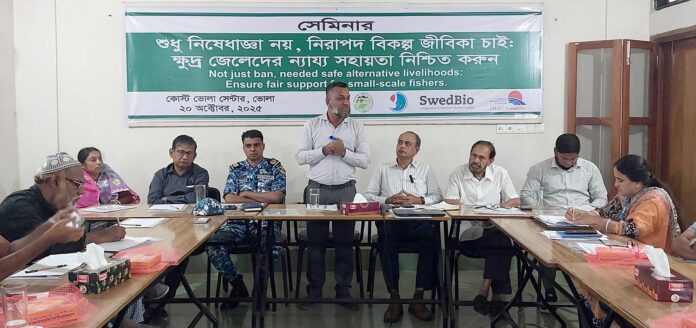 Chair Mobasshir Ullah Chowdhury emphasized that fishers remain trapped by informal debt traps and cannot sell their catch freely. He urged the government to introduce accessible loan facilities and to remove non-fishers from the fishers list immediately.